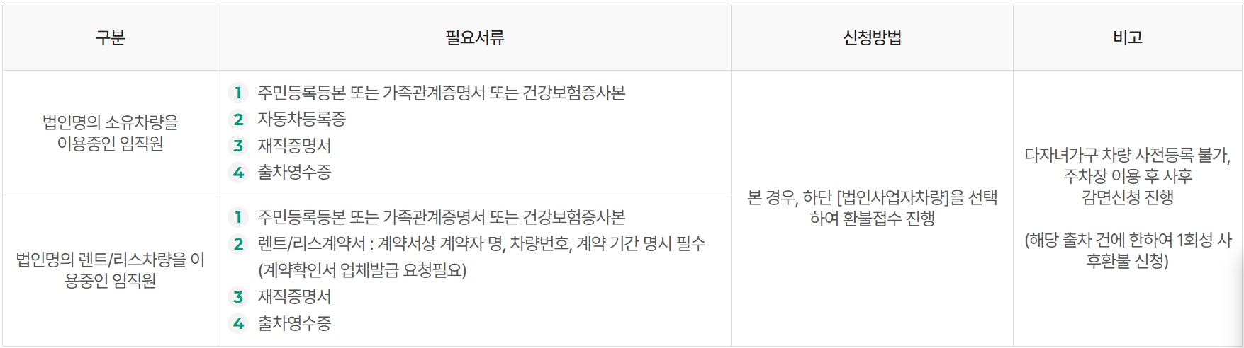 법인 사업자차량(임직원 사용건) 1회성 사후감면신청 안내