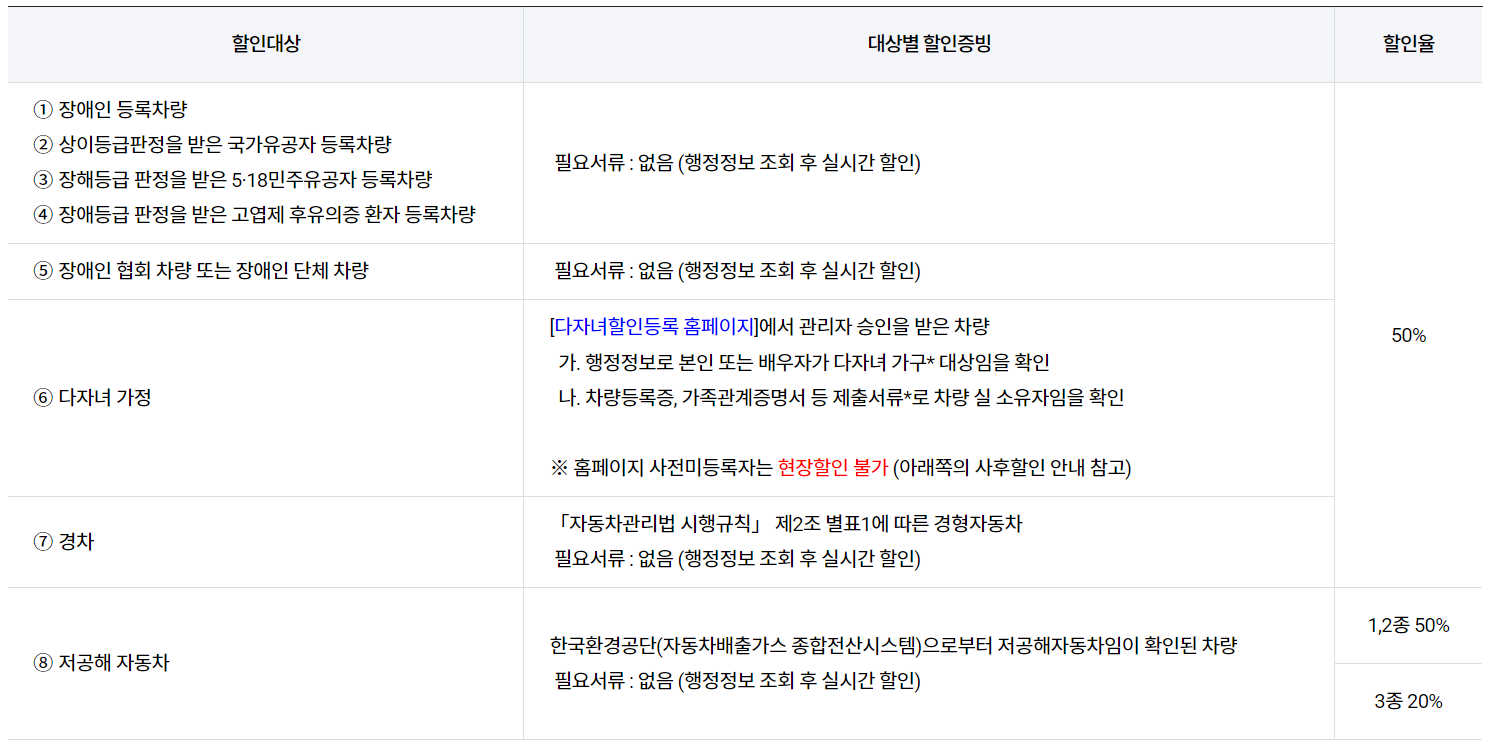 2자녀 이상이면서 막내 자녀가 만 15세 이하인 가구는 다자녀가구 차량등록 완료 시 인천국제공항을 제외한 모든 공항 주차장에서 주차비 50% 자동 할인을 받을 수 있습니다. 단, 막내 자녀의 나