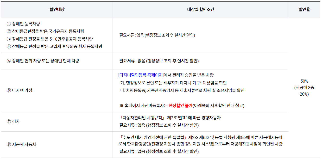 2자녀 이상이면서 막내 자녀가 만 15세 이하인 가구는 다자녀가구 차량등록 완료 시 인천국제공항을 제외한 모든 공항 주차장에서 주차비 50% 자동 할인을 받을 수 있습니다. 단, 막내 자녀의 나