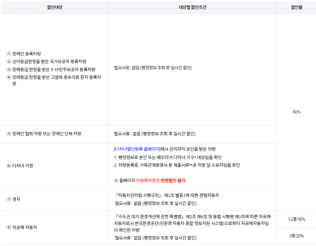 2자녀 이상이면서 막내 자녀가 만 15세 이하인 가구는 다자녀가구 차량등록 완료 시 인천국제공항을 제외한 모든 공항 주차장에서 주차비 50% 자동 할인을 받을 수 있습니다. 단, 막내 자녀의 나