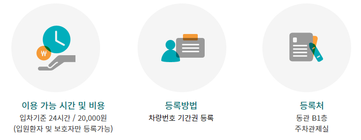 ※ 입원환자 및 보호자 한하여 등록 가능(입차 기준 24시간 / 20,000원)