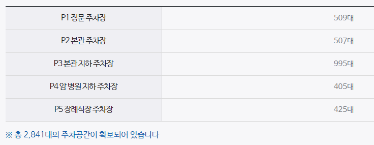 1) P4 암 병원 주차장은 매우 혼잡하여 할인권 구입 및 사용이 불가하여 일과중 암병원을 이용하시는 고객님들께서는 P5 후문 주차장을 이용하시면 보다 빠른 주차가 가능합니다.