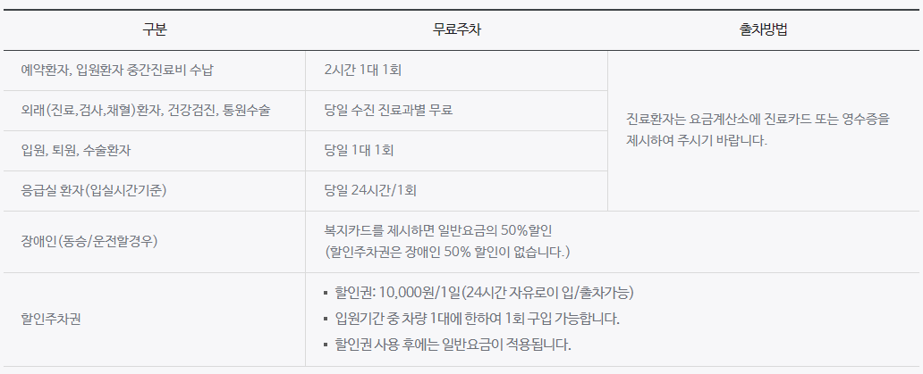 4) 환자차량 등록제 시행 : 차량을 등록하시면 무료가 있는 진료일에는 무정차 자동출차로 편리하게 이용할 수 있습니다.