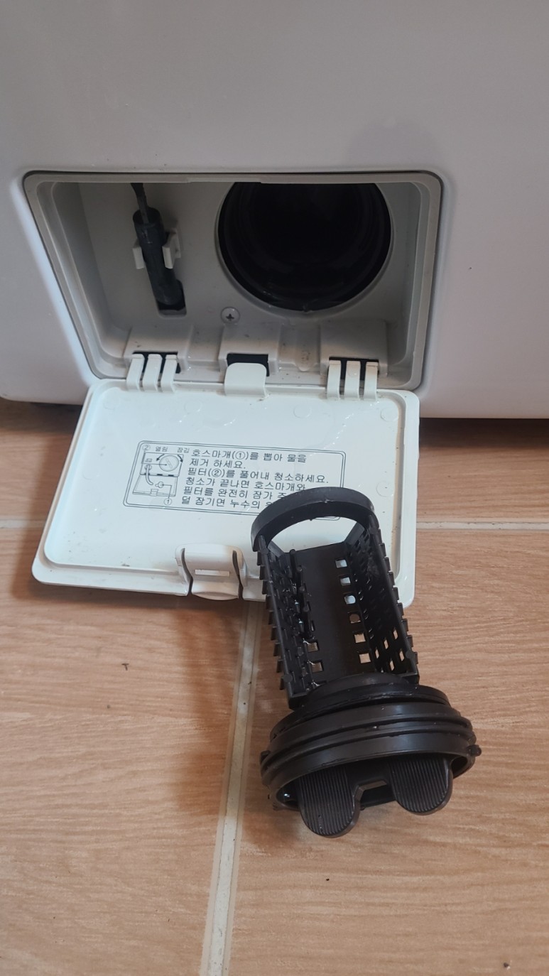 세탁기 사용 도중 행굼물이 배수가 되지 않고